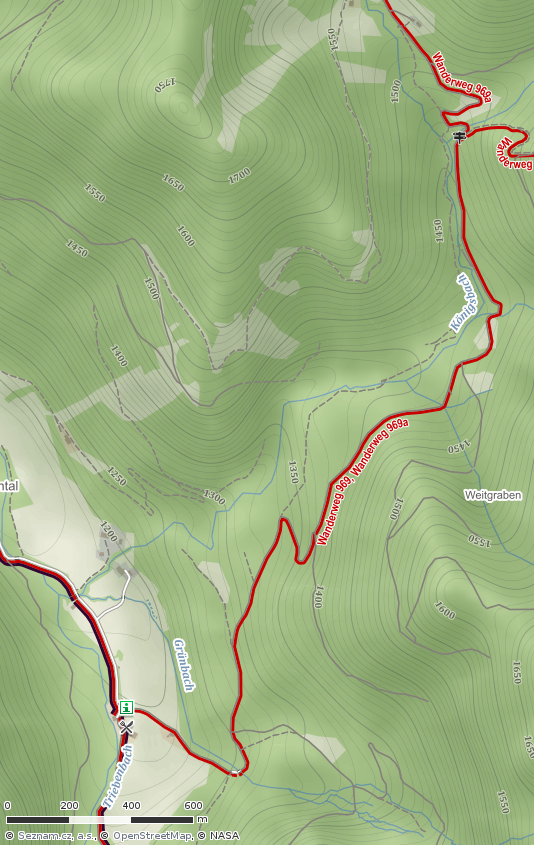 Cesta začíná u horské chaty Bergerhube na konci údolí Triebental. K chatě Bergerhube dojedete z Hohentauern krátkou jízdou autem. Nejprve pojedete kousek zpátky směrem k dálnici do Triebenu a po 2,5 km odbočíte na malou silničku vpravo (před levotočivou zatáčkou silnice dole u potoka). Celá trasa na Moaralm je značená a vede z převážné většiny po mírně stoupající pohodlné lesní cestě, po které se můžete vydat i s kočárkem. Zajímavější je po 1,5 km v ostré pravotočivé zatáčce z hlavní cesty odbočit ve směru šipky „Moaralm“ (poznávací znamení je lavička) a pokračovat po příjemnější lesní pěšině, která přejde na druhou stranu potoka. Obě cesty se spojí těsně před Moaralmem. Po cestě jsou krásné výhledy na skalnatý Gamskogel a Gr. Grießstein (túry č. 17 a 15). V letní sezóně je na Moaralmu otevřená chata se stylovým občerstvením a prodávají zde místní štýrský sýr. Kdo by měl chuť, může pokračovat na pěkný rozhledový vrchol Triebenfeldkogel (viz túra č. 13). Cesta zpátky stejně nebo variantně po hlavní zpevněné lesní cestě – červeně vyznačená turistická značka v mapě.