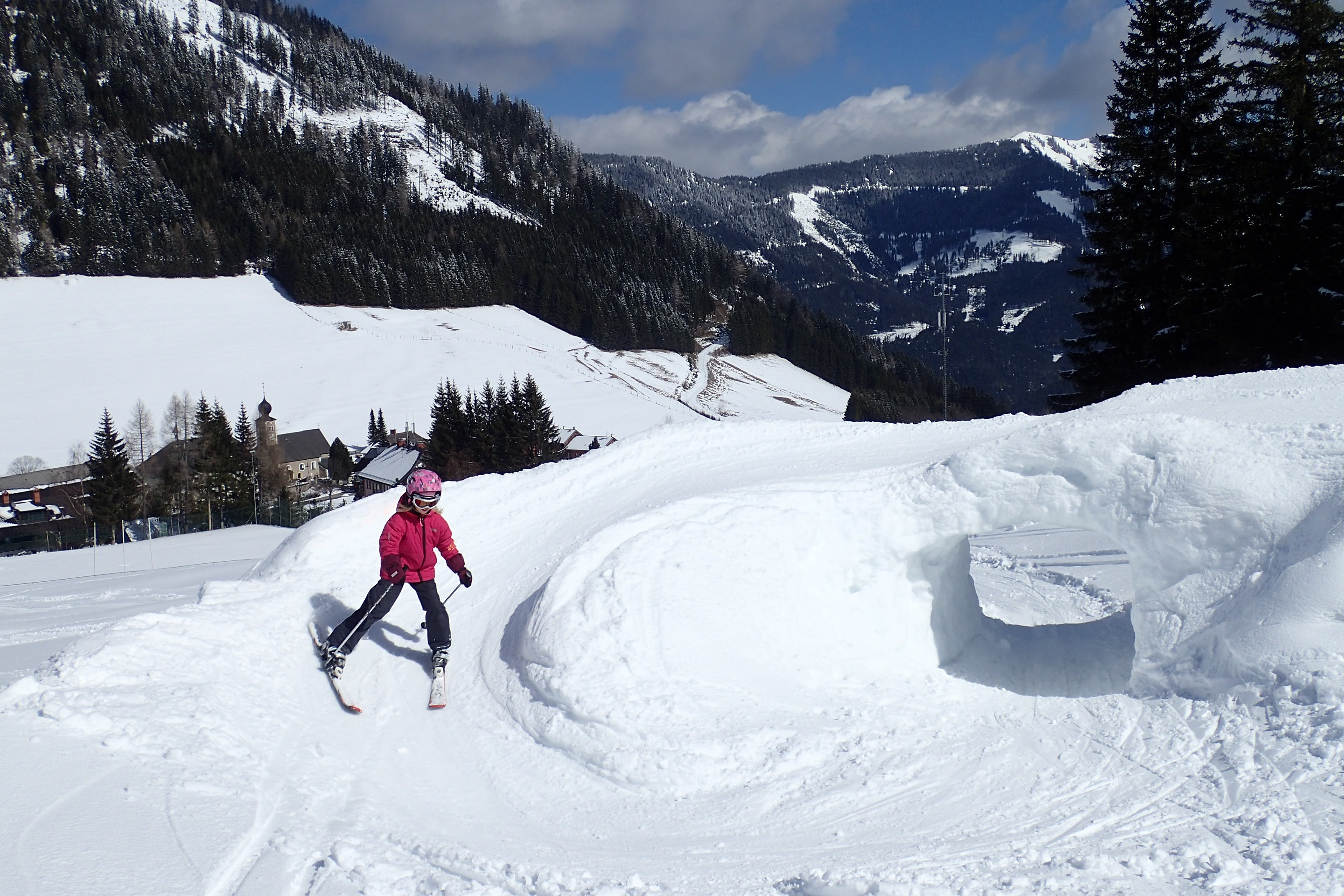 Další parádní zimní atrakcí je 5ti kilometrová sáňkařská dráha od Edelrautehütte. Zde si můžete půjčit sáňky a uspořádat závody pro děti i dospělé. Sáňky potom opřete u závory dole na konci dráhy a chatař si pro ně večer sám zajede. Jedny sáňky jsou k dispozici i na naší chalupě. Kromě toho naleznete hned ve vesnici několik míst na bobování a u hospůdky Pfahlbaudorf je v zimě pro děti udržované menší kluziště s půjčováním bruslí. Při špatném počasí bude příjemným zpestřením návštěva termálních bazénů v Aqua Therme Fohnsdorf.